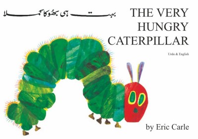 Very Hungry Caterpillar in Urdu & English (PB) Buy now for $15.25 (regularly $16.95) We ship worldwide. Bulk and academic discounts available -- contact us for pricing. Ships within 3 business days. The story of a very small and very hungry caterpillar. He eats one apple on Monday, Two pears on Tuesday, three plums on Wednesday, four strawberries on Thursday, five oranges on Friday, and on Saturday he has an enormous feast. The Caterpillar grows from a small egg to a beautiful butterfly and at the same time manages to nibble his way through the pages of this book!