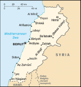 Location: Middle East, bordering the Mediterranean Sea, between Israel and Syria