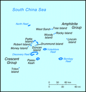 Location: Southeastern Asia, group of small islands and reefs in the South China Sea, about one-third of the way from central Vietnam to the northern Philippines