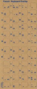 These keyboard stickers are transparent with the character set displayed in a unoccupied corner of each key. The existing letters on your keyboard show thru the sticker.