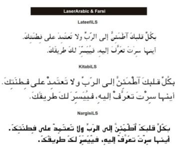 LaserArabic & Farsi in Unicode for Macintosh provides high-quality, Unicode-encoded Arabic and Persian fonts (described above) in TrueType(R) format for standard modern Arabic and Persian, for typing right to left with proper line wrap and full justification (in Mellel, sold separately). The fonts include OpenType layout features which provide automatic contextualization of consonants and proper positioning of vowels and diacritic marks as you type. The fonts do not include the distinctive symbols of Koranic Arabic. LaserArabic & Farsi in Unicode for Macintosh includes five keyboard layouts. There are three Arabic keyboard layoutsone phonetic (based on the English keyboard), one Standard (based on the Macintosh Arabic layout), and an additional Arabic phonetic keyboard based on the French Azerty layout. There are two Persian keyboard layoutsone phonetic based on the English layout, and one Standard, based on the Macintosh Persian layout. The user can switch between English and Arabic, or English and Persian, by pressing the caps lock key.