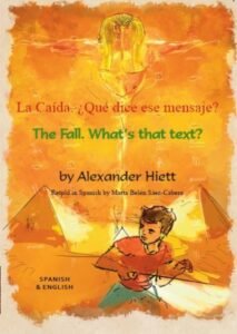 “The Fall. Whats that Text? is a short story for children aged 10 to 14, written in the first person. The adventure story is supported by Alex Hietts dramatic illustrations. An underlying feature is exposing the reader to the variety of scripts, appropriate in this dual language book. The evolution of scripts, strongly linked to material culture of the times, shows the links to power structures in society.